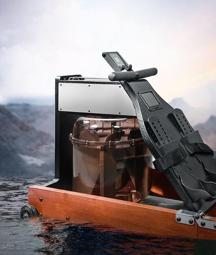 Складной гребной тренажер KingSmith Rowing Machine с водяным сопротивлением максимально точно имитирует реальный опыт гребли и позволяет регулировать уровень нагрузки в зависимости от подготовки пользователя.